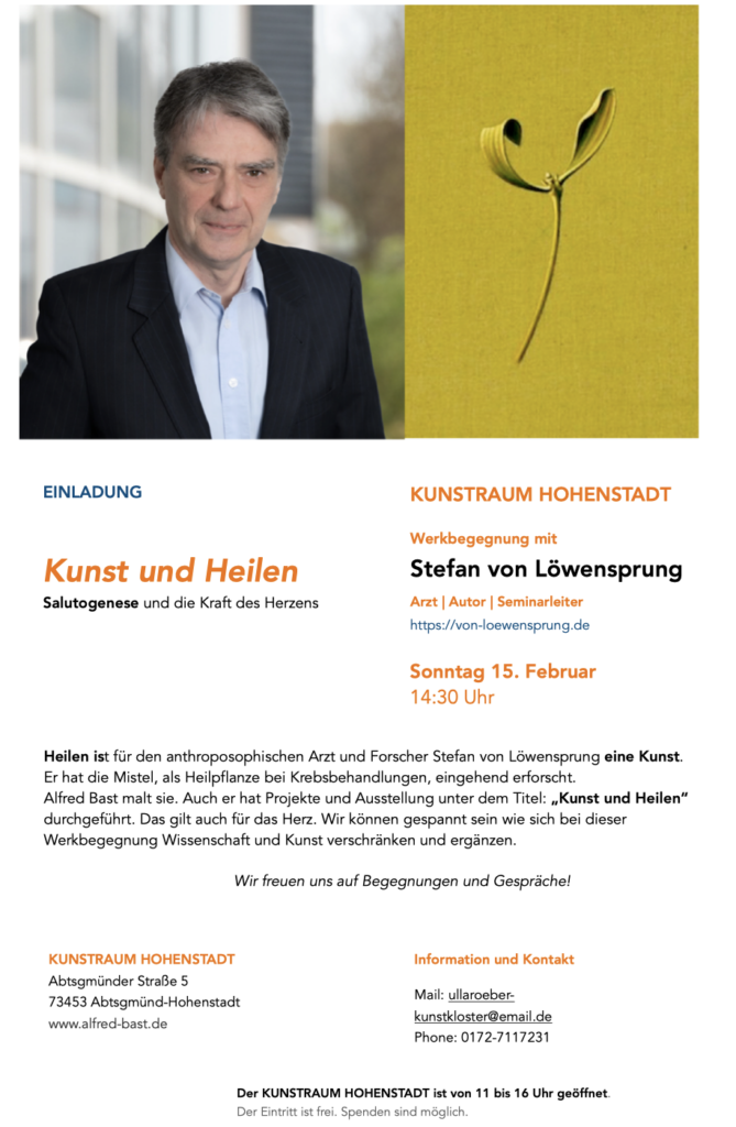 zur Februar-Werkbegegnung im KUNSTRAUM HOHENSTADTmit dem Arzt und Autor Stefan von Löwenspung – zum Thema KUNST & HEILEN
