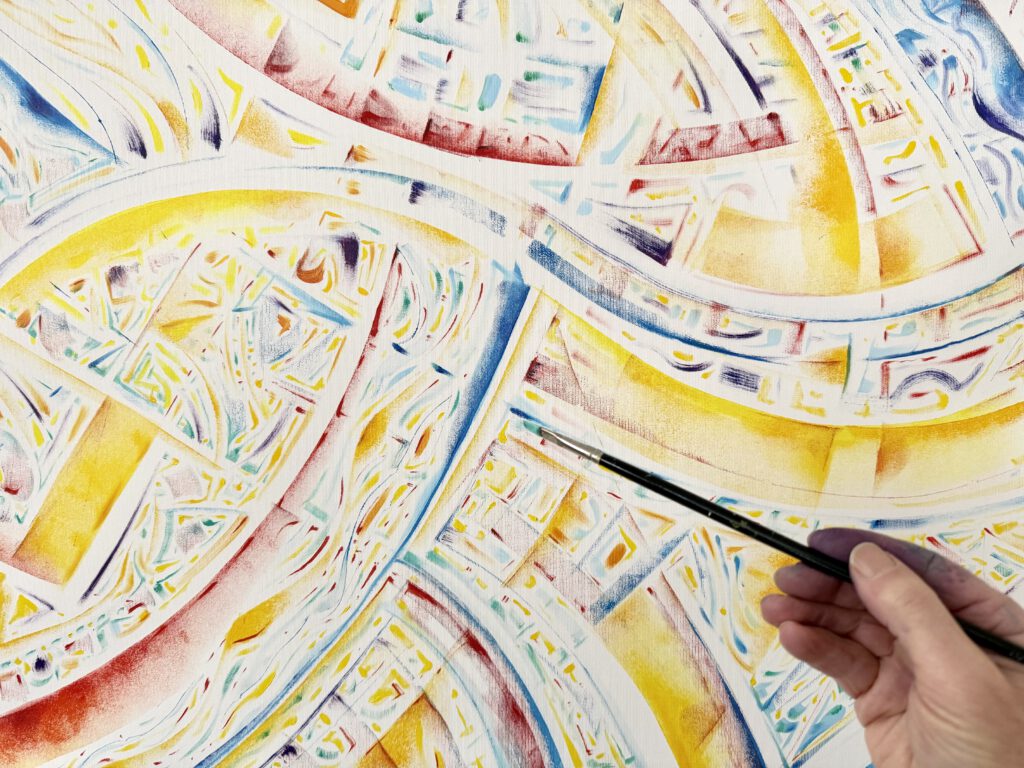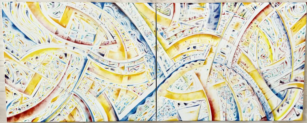 Allerdings befrage ich nicht die KI (die Artifical Intelligence) im Internet, sondern die Potenziale im eigenen Gehirn, im „Inner-net“ (mit seinen etwa 86 Milliarden Neuronen und 100 Billionen Synapsen).Ich meine die Künstlerische Intelligenz (oder Art Intelligence) die verbunden ist mit der Kosmischen Intelligenz, also jener, die nicht vom Menschen gemacht ist, doch die seine hervorbrachte.