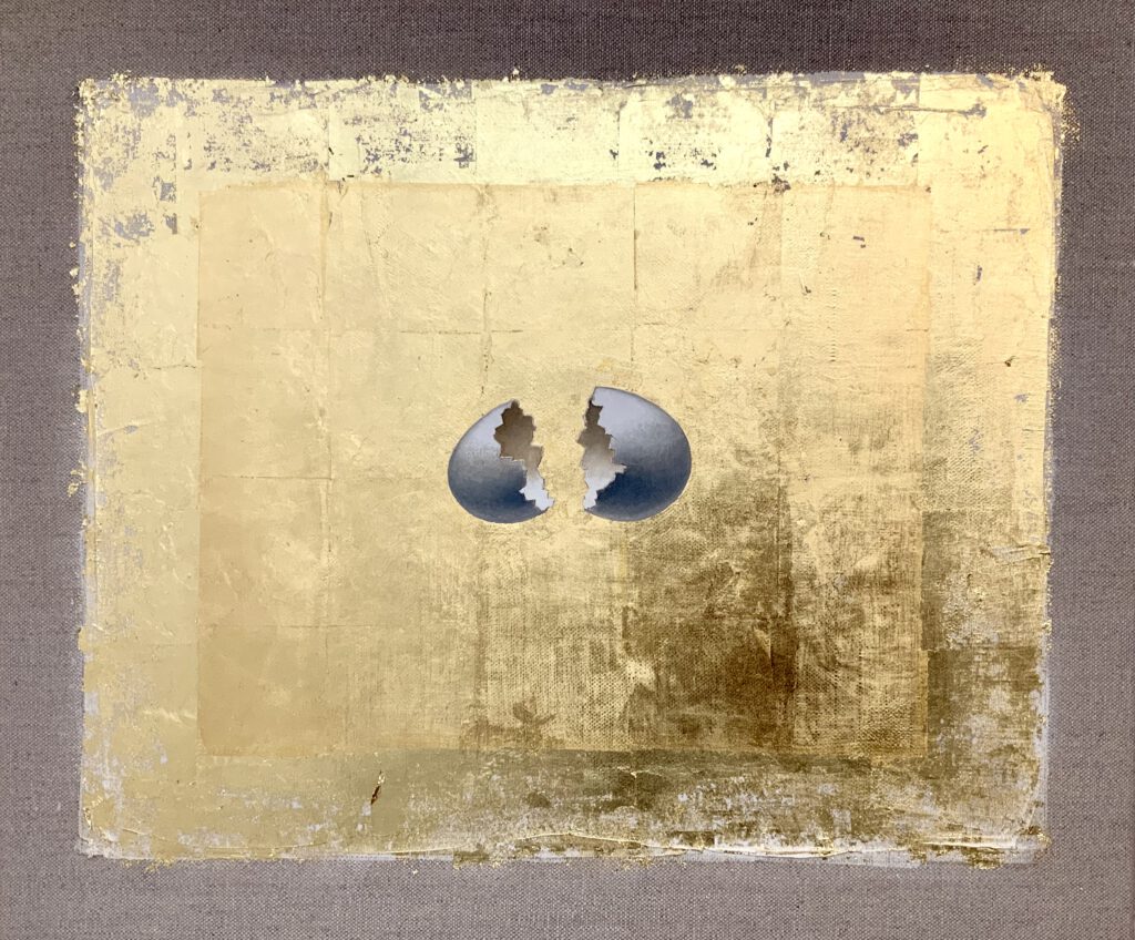 Alfred Bast. Aufbruch. Ölfarbe auf Blattgold und grundiertem Tuch. 45 X 55 cm. 2024.