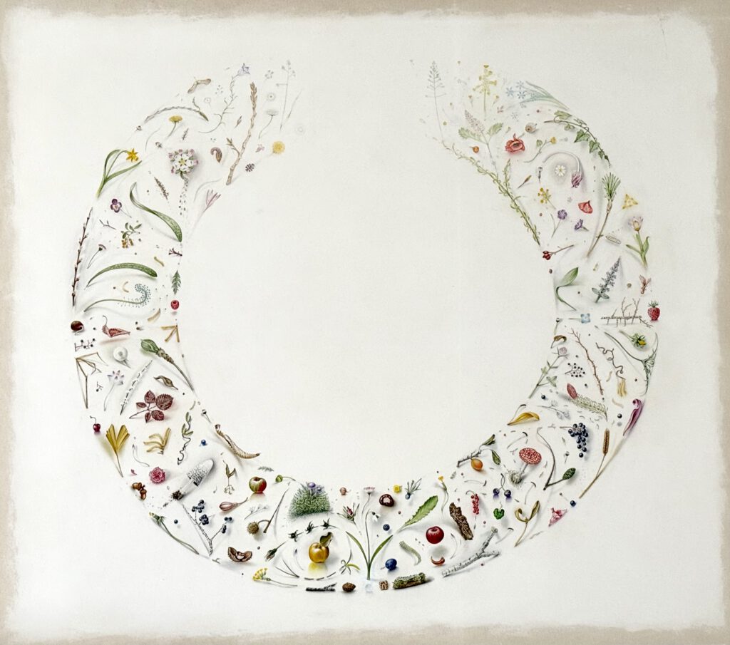 Es ist ein großes Bild mit vielen unscheinbaren Naturgestalten, (siehe: Februar Werkbrief aus dem Atelier, M AYA),